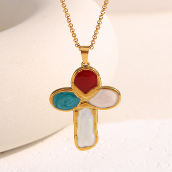 חלום boho שיק קיץ אופנתי הצהרה אביזר שרשרת זהב תליון צלב אמייל צבעוני נירוסטה